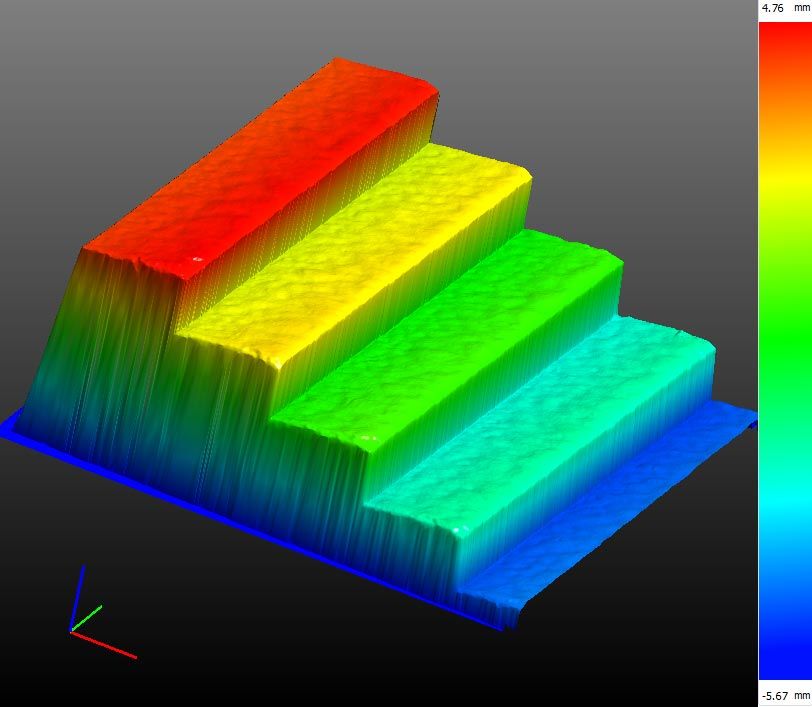 Nutzen Sie die 3D PointCloud oder “Z-Maps” zur Prüfung und zur Vermessung. Die Höhe des Objekts wird in echten Millimetern angezeigt.